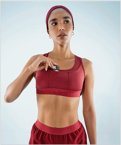 Prepárate para alcanzar nuevo récord con nuestro top deportivo diseñado para correr y practicar deportes de alto impacto. La sujeción alta ofrece seguridad al reducir el movimiento al mínimo. Los 3 bolsillos frontales permiten que puedas llevar tus cosas sintiéndote libre sin necesidad de cargar elementos externos y el elástico en la espalda te ayudará para que cargues tus cortavientos, toalla o alguna prenda sobrepuesta mientras entrenas.